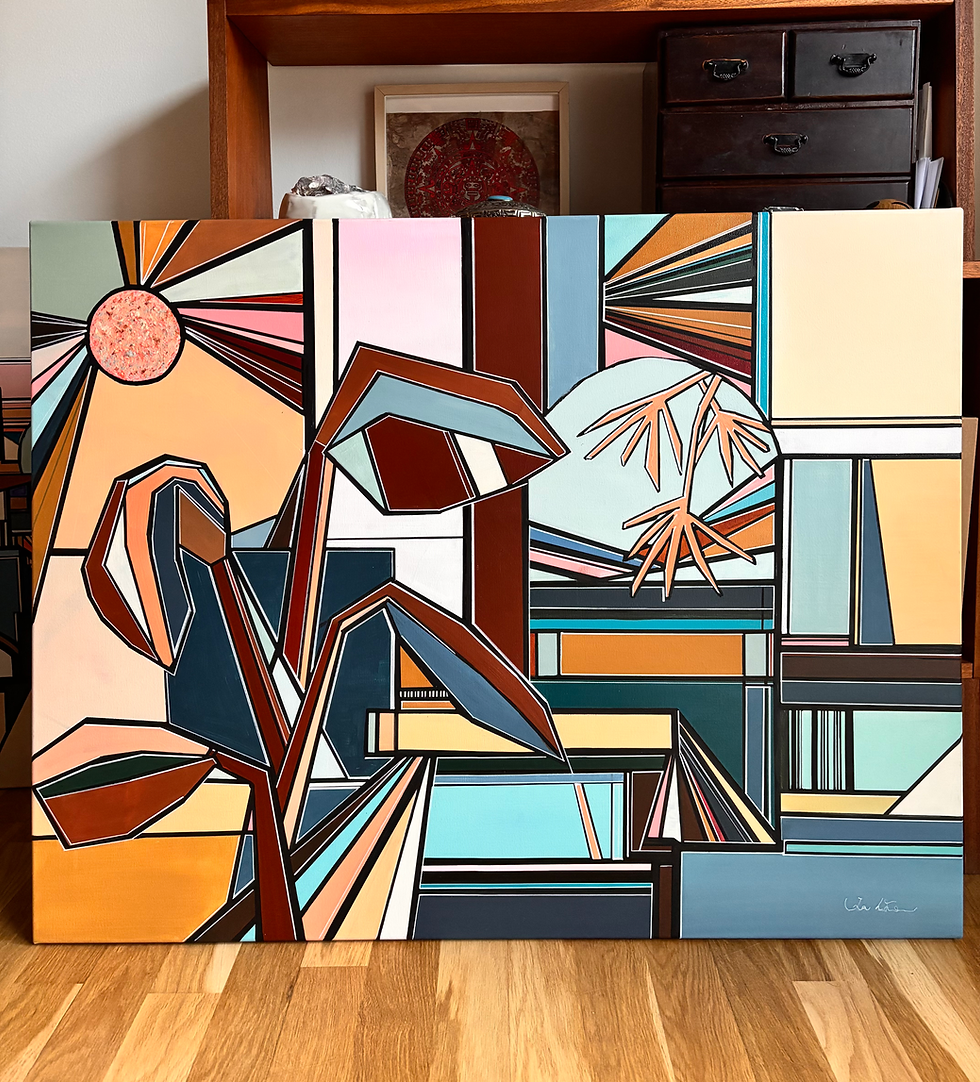 Velkommen til en verden, hvor arkitektur og kubisme mødes i en sammenhæng af farver og former. Jeg er en kunstner, der udforsker grænserne for visuel kommunikation gennem malerier, der er bygget op af komplekse geometriske former og sanselige malemedier. Lysspektret, verden og universet fortolker jeg på min egen distinktive måde og gennem en dynamisk skiften mellem to- og tredimensionelle perspektiver skaber jeg malerier, der inviterer til at dykke ned i en verden af imaginære udsigtspunkter og tankevækkende kompositioner.